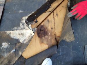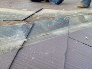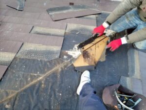 雨漏り箇所のスレート一部撤去
