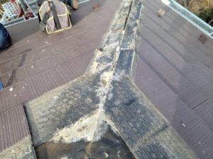 本来であれば、カバー工法であったり、屋根を捲ってしまって下地から葺き替えするなどが望ましいですが、コストとの兼ね合いもありましたので、部分的な雨漏り修理にて対応させていただくことに。