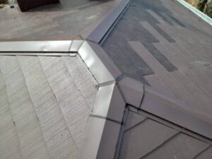 点検に伺うと、水は棟部分から漏れていたことが判明。