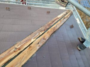 まず、雨漏り箇所の棟板金を全て取り外しました。