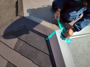 複雑な形状の棟板金も、一パーツごとに確実に、防水性を意識しながら接合していきます。