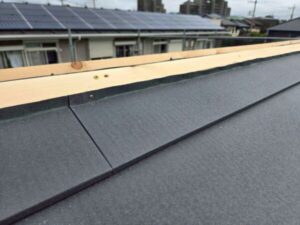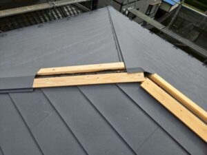 設置コストの安い木製の貫板を設置し、棟の板金をビス固定できるよう準備。