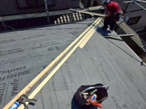防水を担う重要なシート「ルーフィング」を丁寧に敷き込み!